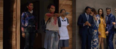 借著一對新人的喜氣,賓客們吞云吐霧、翩翩起舞,看起來一片歲月靜好的樣子,但一個人的出現(xiàn)打破了這份美好。