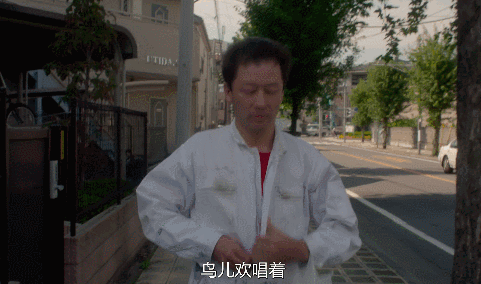 獨(dú)自走在路上的草太郎,不自覺(jué)地脫下了白色連體工作服,露出了穿在里面的紅T恤。