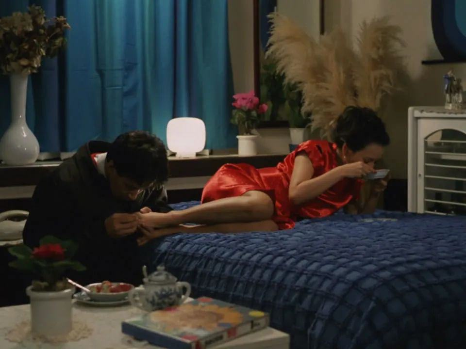 導(dǎo)演用室內(nèi)劇式的鏡頭語(yǔ)言,將全片鋪陳展開(kāi)——攝影機(jī)橫向移動(dòng),宛如大幕拉開(kāi)、演出開(kāi)始,片中角色總是直面觀眾,表演中帶有不自然的戲謔與夸張。