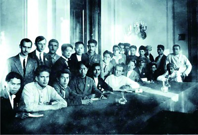 | 1921年,共產(chǎn)國(guó)際第三次代表大會(huì)與會(huì)人員合影,后排左四系瞿秋白,后排左五系張?zhí)住?/span> |