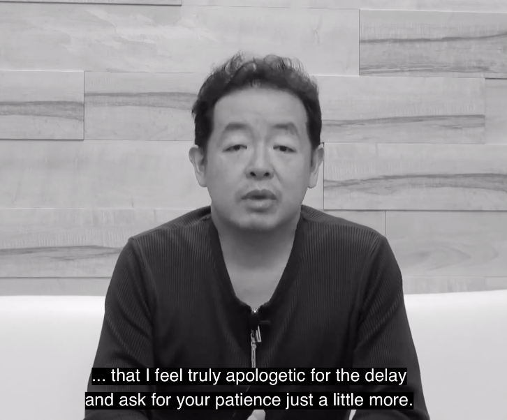 導(dǎo)演長(zhǎng)濱博史錄制視頻為一再跳票道歉,懇請(qǐng)觀眾們?cè)俣嘟o點(diǎn)時(shí)間,并放出動(dòng)畫(huà)開(kāi)頭女主五島桐繪在黑渦鎮(zhèn)登場(chǎng)的一段供大家嘗鮮。