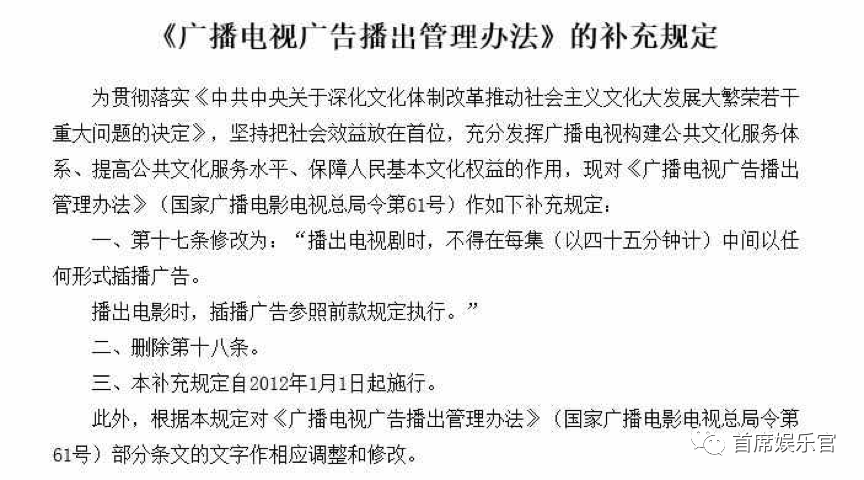 為了應(yīng)對危機,2015年10月,中國電視劇制作產(chǎn)業(yè)協(xié)會給廣電局提出“關(guān)于加強電視劇市場工作的幾點建議?!睆娏乙蠡謴?fù)電視劇中插播廣告。但此舉非但沒有獲得支持,廣電局的限制反而愈演愈烈。新規(guī)定中增加了“不得擅自更改每集電視劇長度變相插播廣告”、“不得在片頭和片尾前后播出廣告”等條款。