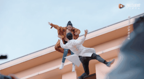 天臺(tái)自由落體運(yùn)動(dòng),兩人掉在了氣墊上。