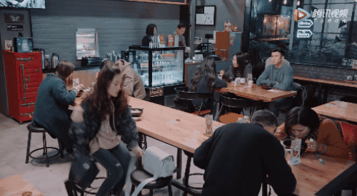 來到飯館吃面,看到坐在對(duì)面的男二捧著大碗吃飯時(shí)。