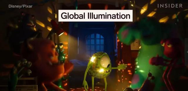 而到了《怪獸大學(xué)》,皮克斯建立起“全局照明”系統(tǒng),用來模擬場景中的自然光照分布。
