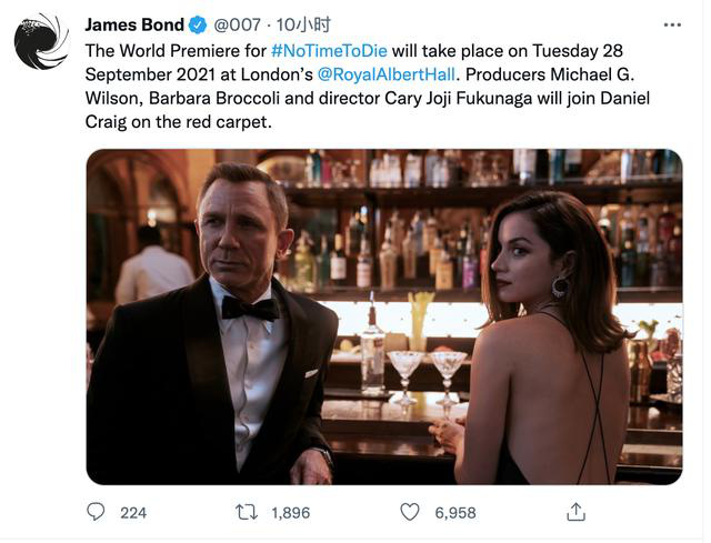 時光網(wǎng)訊最新一部“邦德”電影《007:無暇赴死》,2019年10月就殺青了,快過了兩年粉絲們也沒看上,本片也將是丹尼爾·克雷格的卸任之作。影片因為疫情延檔了很多次,這次官推終于宣布了世界首映日期(首映式一般會比公映日期早一點兒)——9月28日,紅毯禮的日子都定了,看來新片終于不會再次跳票了!