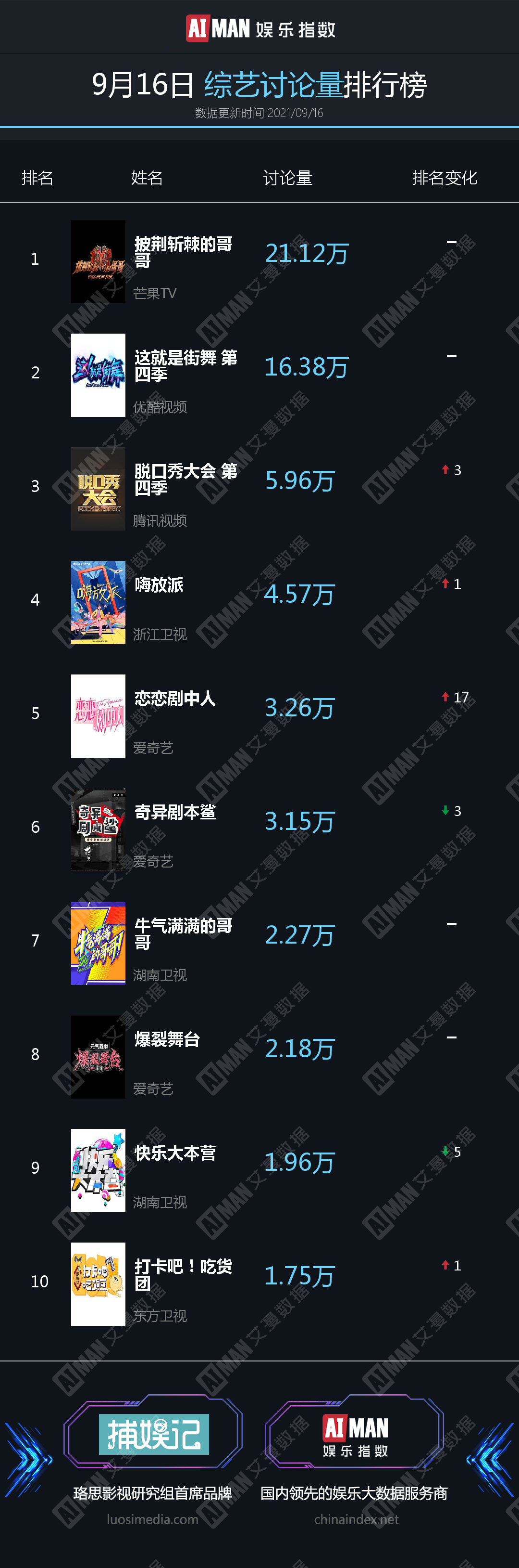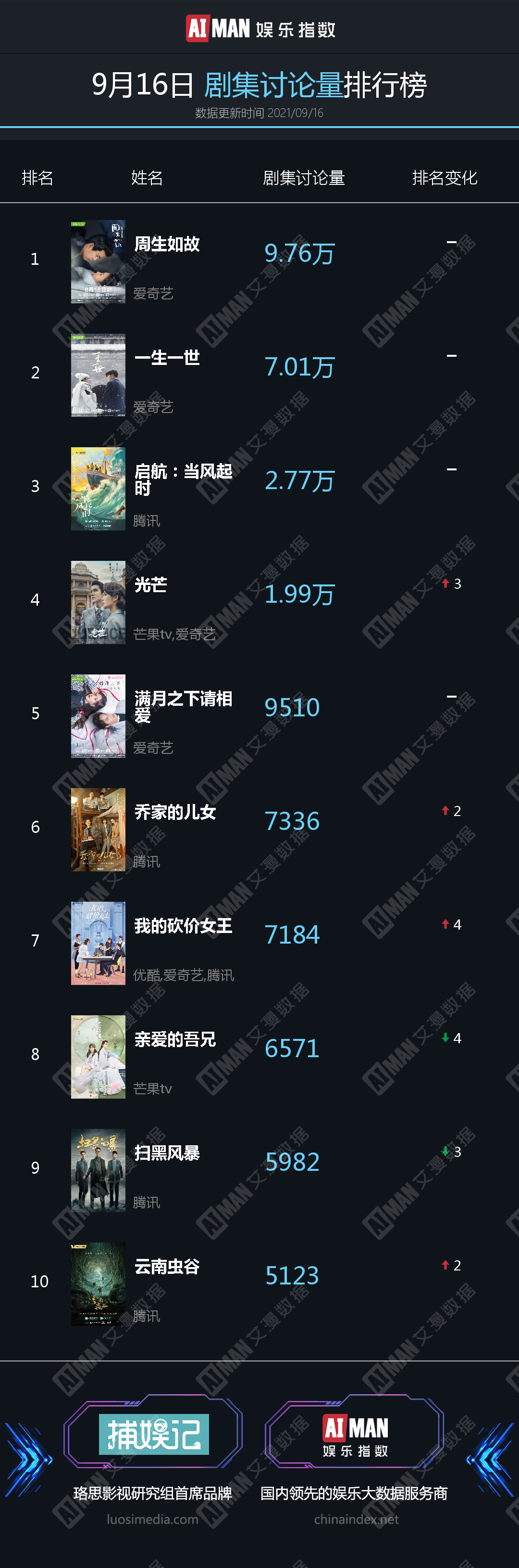 珞思影視研究組聯(lián)合艾漫娛樂指數(shù)發(fā)布“珞思熱榜”,艾漫數(shù)據(jù)提供每日、每周綜藝、影視數(shù)據(jù),珞思影視研究組提供短評解讀,速遞文娛熱聞。