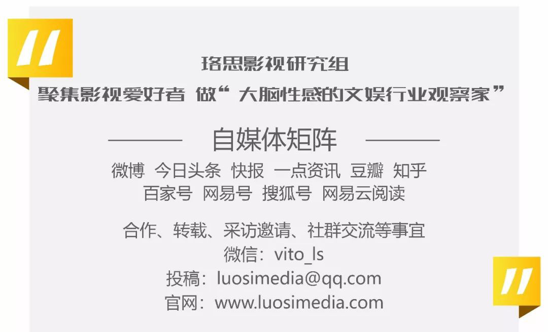 珞思影視研究組聚集了一群影視愛好者,深鉆業(yè)務(wù)、精于思考、透視情懷,力做“大腦性感的文娛行業(yè)觀察家”。