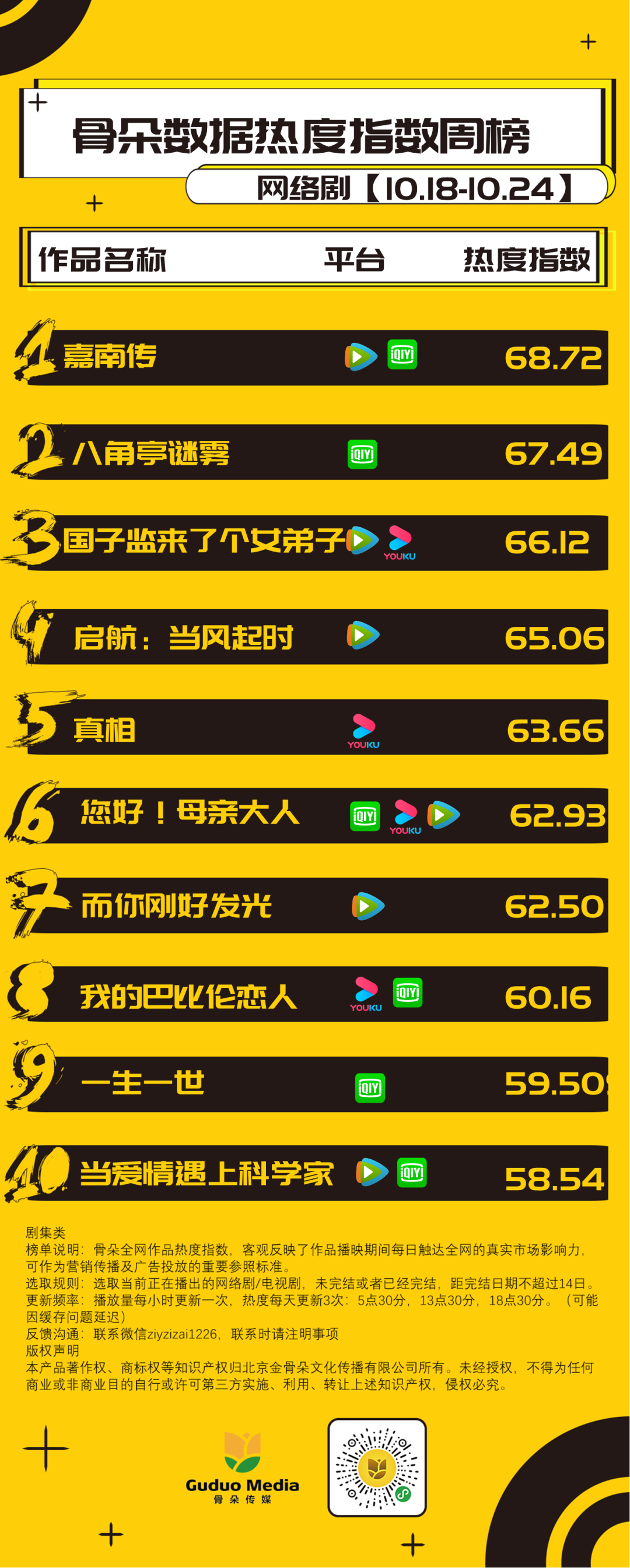 10月18日-10月24日,網(wǎng)劇周榜數(shù)據(jù)解讀: