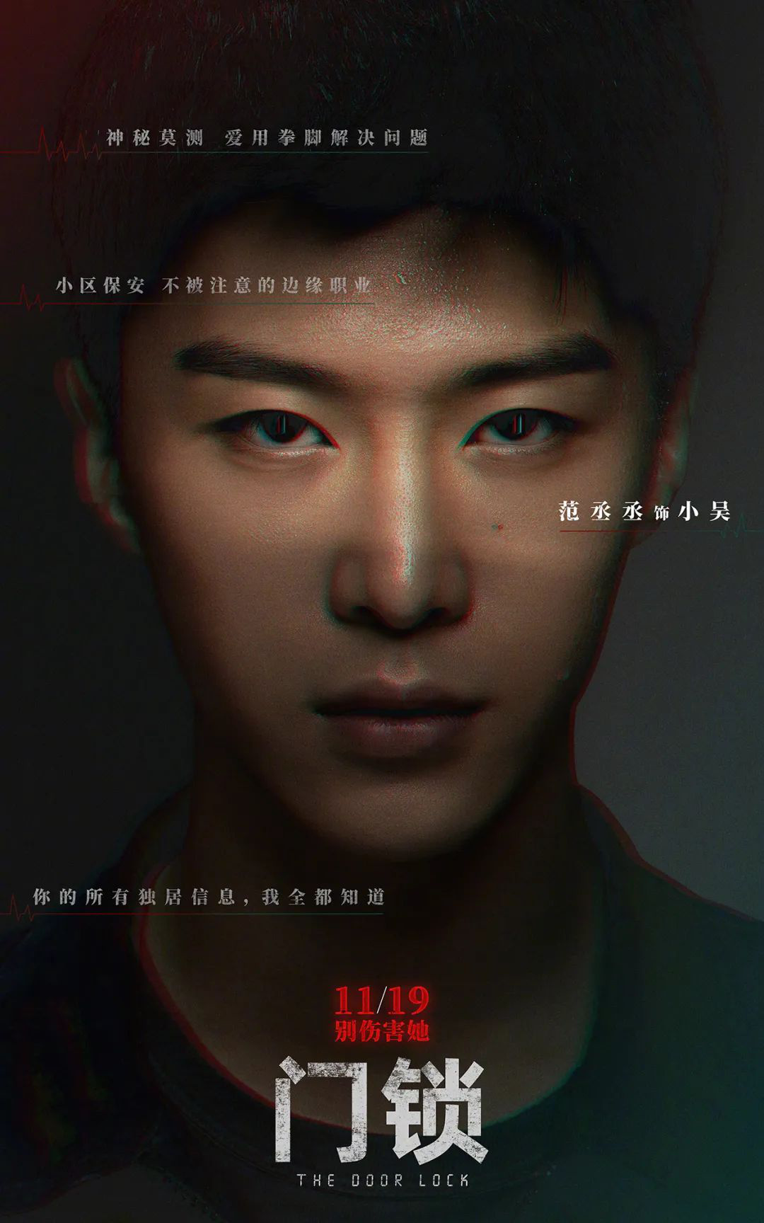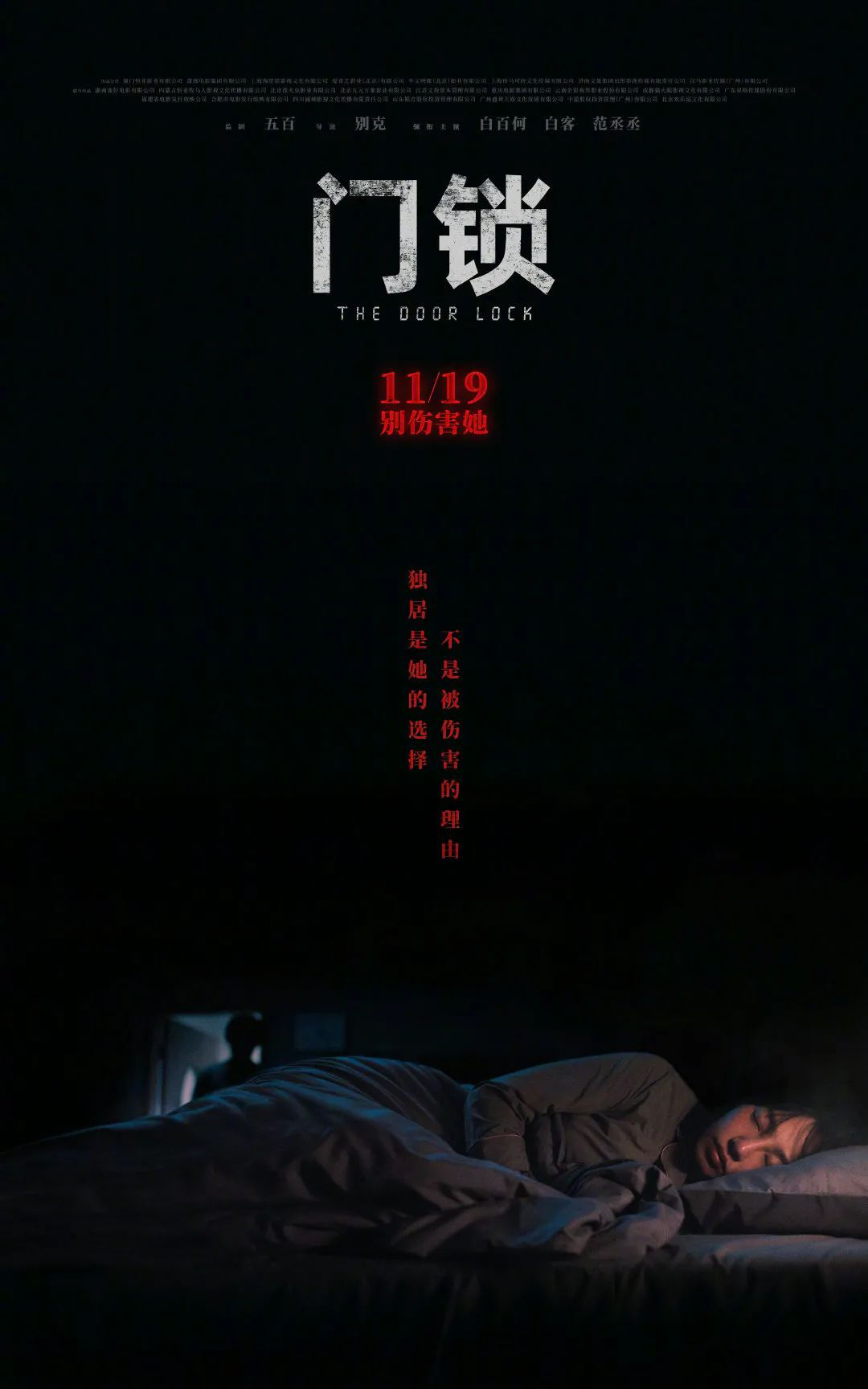 比如上個月被夸過的《門鎖》,本月這張新海報延續(xù)了電影獨居女性安全的整體話題保證,且兩張海報放在一起,也能看到是從不同設計角度來對這一主題的呈現(xiàn)。