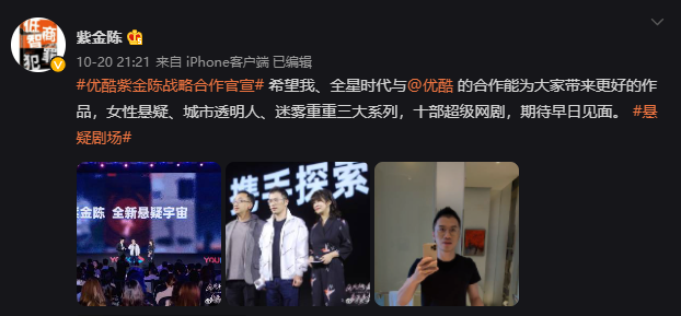 >這個問題似乎可以在未來得到答案——在今年10月舉行的優(yōu)酷“2020精品先鑒會”上,平臺方官宣與作家紫金陳達成了“未來五年創(chuàng)作三個系列十部作品”的戰(zhàn)略合作。如果迷霧劇場真因失去了紫金陳就一蹶不振的話,那優(yōu)酷的這些作品播出效果如何,就是在應驗網(wǎng)友們的調(diào)侃了。