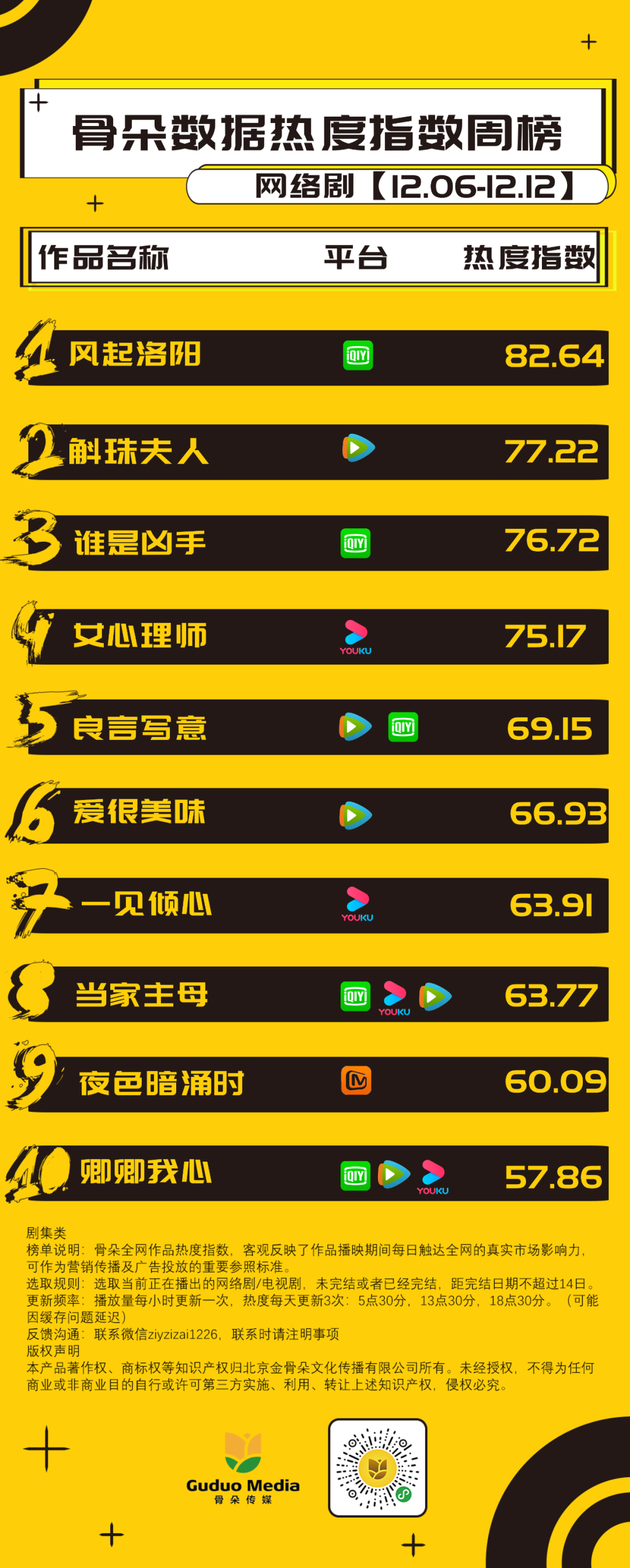 12月6日-12月12日,網(wǎng)劇周榜數(shù)據(jù)解讀: