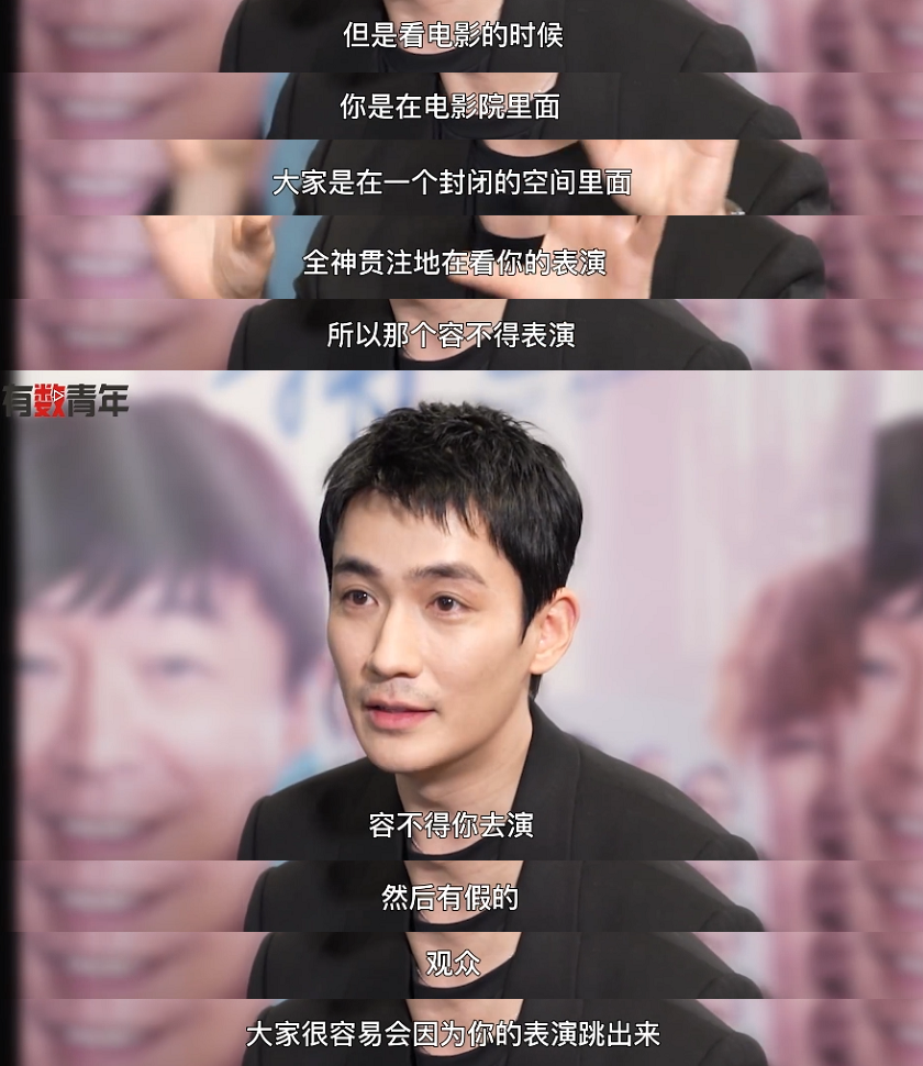 他特別清楚,當(dāng)觀眾在一個(gè)封閉空間里,全神貫注地看大銀幕上的表演時(shí),“容不得你去演”。