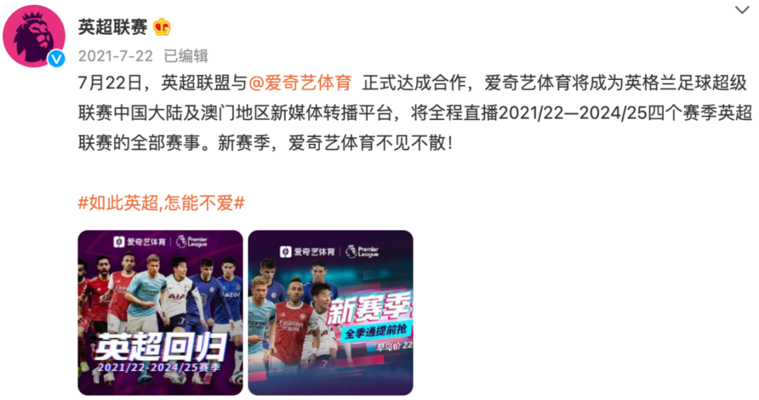 愛(ài)奇藝拿下英超2021-2024四個(gè)賽季獨(dú)家版權(quán)