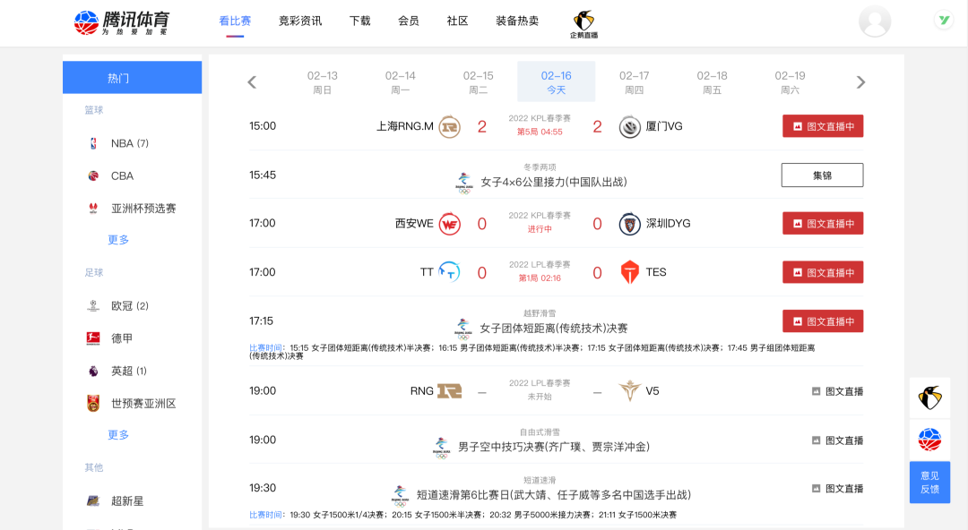 騰訊體育官網(wǎng)截圖
