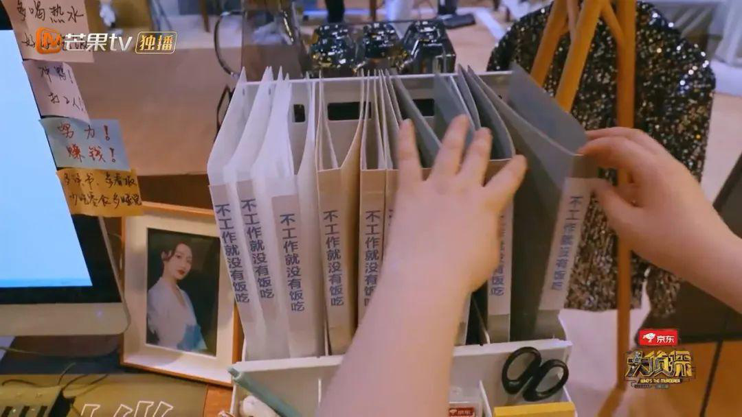 她的文件夾書脊上全寫著“不工作就沒有飯吃”。