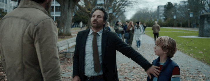 “綠巨人”馬克·魯弗洛在《亞當(dāng)計劃》中扮演一名物理學(xué)家,才識過人,不擅長表達(dá)情感,角色性格一如綠巨人變身前的模樣。