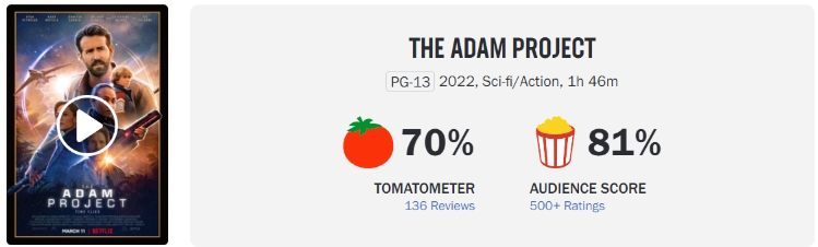 《亞當(dāng)計劃》上周五在網(wǎng)飛上線后,觀看人數(shù)眾多,大多數(shù)是奔著演員陣容來的。豆瓣和IMDB都在一天內(nèi)開分,分別是6.4和6.9分,國外網(wǎng)友比國內(nèi)網(wǎng)友對本片更寬容一點(diǎn)。