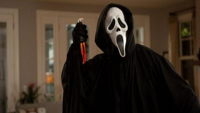 第一部《驚聲尖叫》誕生于1996年,1400萬美元的成本,最終斬獲1億7千萬美元的全球票房,是恐怖片中以小搏大的典型案例。之所以能如此賣座,且影響力延續(xù)至今,離不開其中塑造的經(jīng)典“鬼臉殺手”形象。盡管這一裝扮看上去普通廉價,設(shè)計靈感卻來自于蒙克的畫作《吶喊》,如今也已經(jīng)成為萬圣節(jié)文化里最常見的符號之一。