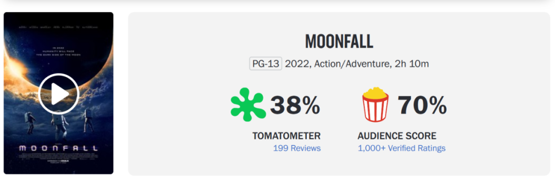 但這并不意味著《月球隕落》受到國內(nèi)大部分觀眾歡迎,其豆瓣評(píng)分僅為5.4,好于21%的科幻片、23%的災(zāi)難片,遠(yuǎn)低于同為3月國內(nèi)上映、豆瓣評(píng)分7.6的《新蝙蝠俠》、6.4分的《神秘海域》。而國內(nèi)圍繞《月球隕落》的討論,除去對(duì)導(dǎo)演羅蘭·艾默里奇創(chuàng)作上的質(zhì)疑外,“好萊塢電影缺乏創(chuàng)新力”的話題也被再度提及。