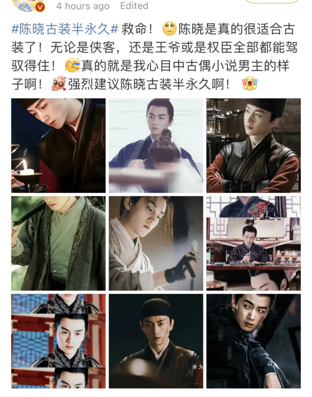 作為觀眾的我們,還都沒有看完這部劇,就已經(jīng)開始求陳曉永遠留在古裝世界和永遠和劉亦菲當CP!麻煩他把古裝劇半永久好不好!拜托這么好看的男明星不要浪費臉,不要為了轉型什么劇本都接!古偶劇一樣也可以拍的很好啊。