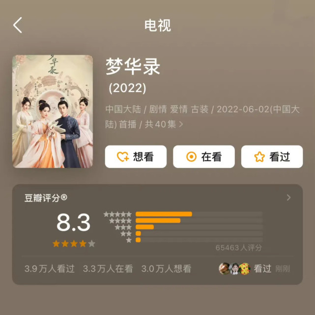 先是在豆瓣平臺上有效觀看人數(shù)已經(jīng)達標,超過6萬多人為它打下了分數(shù),開分后顯示8.3,用了半天,也就是6個小時左右的時間,一直飆升至8.8,成為了騰訊視頻旗下制作的S+劇目當中分數(shù)最高的一部。