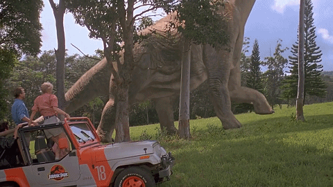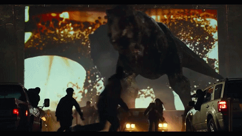 當(dāng)然,還有“侏羅紀(jì)”系列標(biāo)志性的鏡頭——霸王龍的霸氣嘶吼。