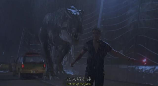 我們也不會忘記馬爾科姆博士在第一部中,英勇地舉起燃燒棒,為其他人引走霸王龍的橋段,這一幕同樣在本片里發(fā)生。只不過,這回他記得把火把捅進(jìn)了霸王龍嘴里。