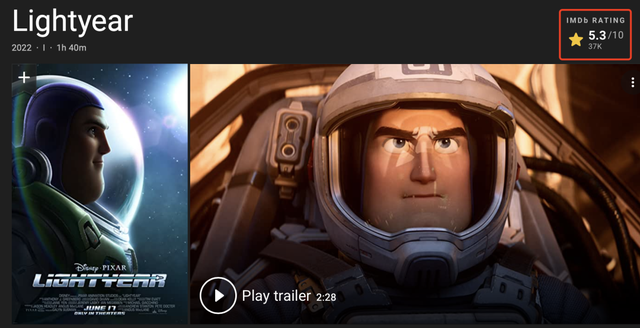 IMDb僅5.3分,目前已是皮克斯作品中最低,爛番茄新鮮度75%。北美上映首周,5100萬的票房亦遠(yuǎn)低于預(yù)期。