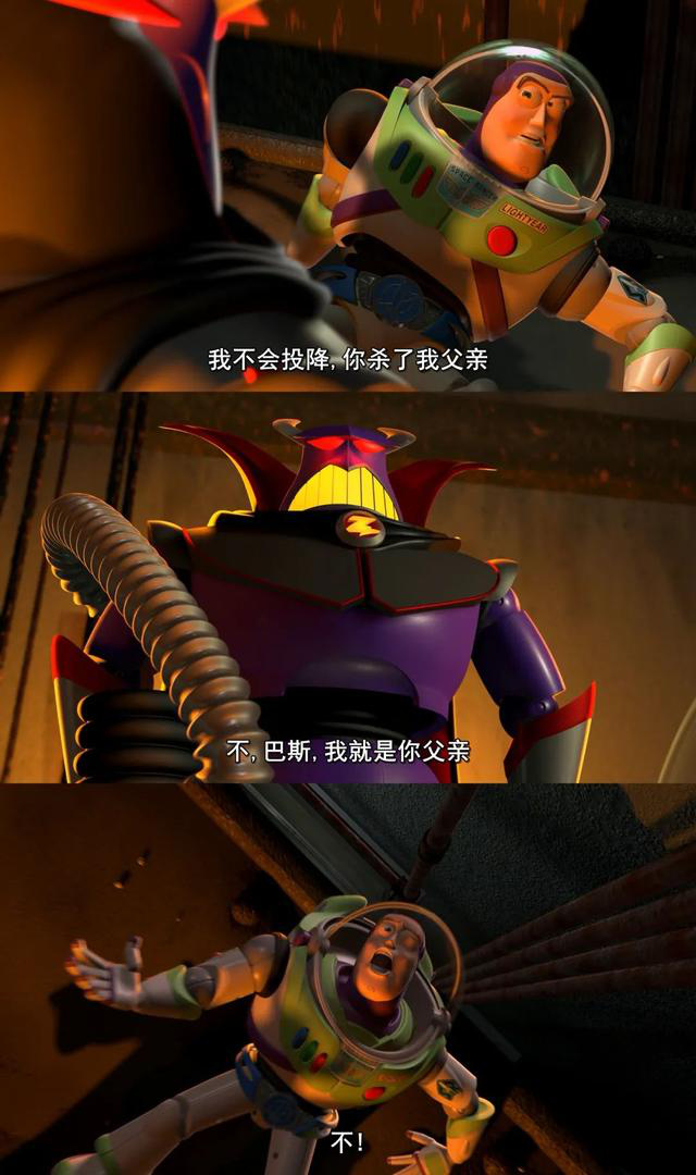 第一部是熱血中二少年。第二部里則大玩“真假巴斯”,新款巴斯光年玩具混入胡迪救援隊(duì)中,繼續(xù)直冒傻氣。而真巴斯遭遇老對頭佐格后,甚至上演“星戰(zhàn)”系列名場面之“我是你爸爸”。