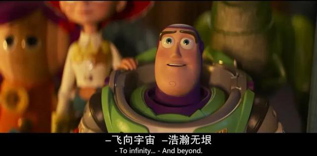 至少在觀影者心中,這句經(jīng)典臺詞由玩具口中說出,遠(yuǎn)比被與他一模一樣的人類作為口號大喊,更具分量。