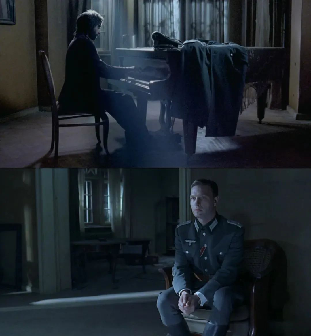 影片最經(jīng)典也是最震撼人心的作品,出現(xiàn)在納粹軍官在廢墟住所發(fā)現(xiàn)什皮爾曼后的段落。