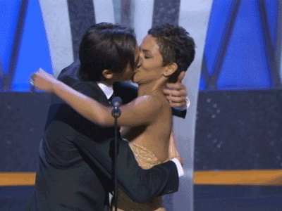 他熱情地?fù)肀Р⒓の橇祟C獎(jiǎng)人、也是前一屆的奧斯卡影后——哈莉·貝瑞,一度讓女方措手不及,非常尷尬。