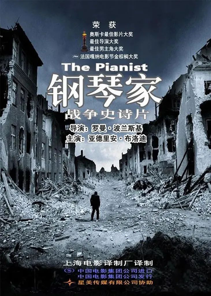 問(wèn)鼎金棕櫚,囊獲奧斯卡三個(gè)重量級(jí)小金人,《鋼琴家》早已成為反戰(zhàn)片的經(jīng)典,其藝術(shù)成就與斯皮爾伯格同題材的《辛德勒的名單》不相伯仲。