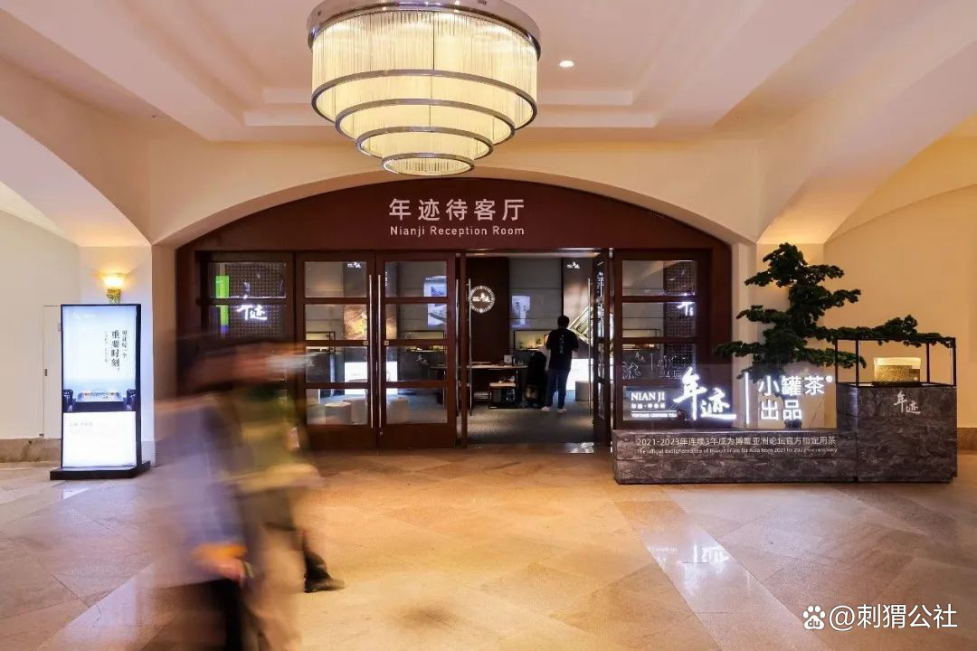 交朋友的場合有很多,年跡待客廳是其中一個。它門頭色調(diào)沉穩(wěn)大氣,門前右側(cè)有一顆青色迎客松和專門為此屆論壇定制的紀念茶磚,客廳內(nèi)兼具設(shè)計美感與簡約商務的現(xiàn)代風格,以當代設(shè)計語言詮釋著深邃的傳統(tǒng)文化。