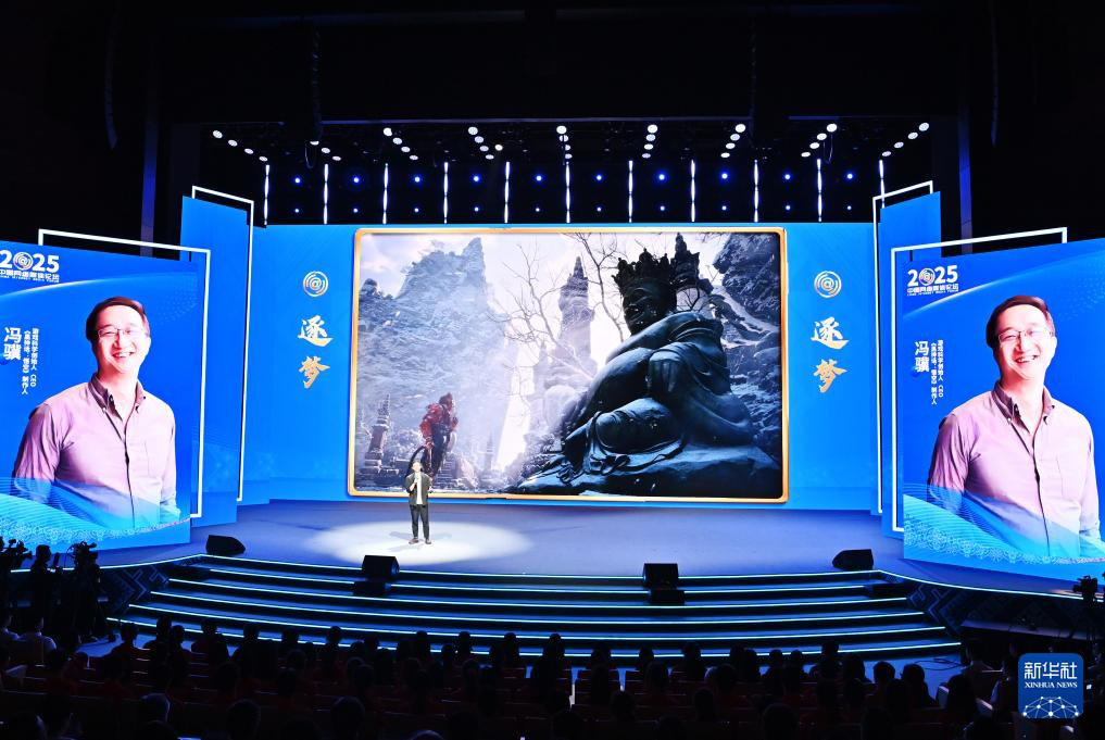 | 3月30日,《黑神話:悟空》制作人馮驥在開幕式現(xiàn)場講述創(chuàng)作故事。新華社記者 周華 攝 |