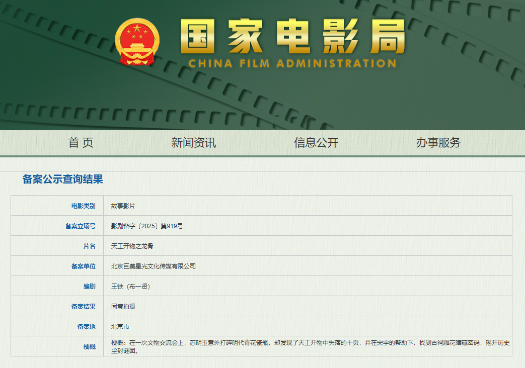 2025年6月13日,國(guó)家電影局發(fā)布最新影片立項(xiàng)公示,由青年導(dǎo)演布一賢編劇的歷史文化題材電影《天工開物之龍骨》正式獲得立項(xiàng)批準(zhǔn)。這標(biāo)志著以明代科學(xué)家宋應(yīng)星及其傳世著作《天工開物》為藍(lán)本的系列電影工程已全面啟動(dòng),開啟中國(guó)古代科技文明的電影宇宙建構(gòu)之路。
