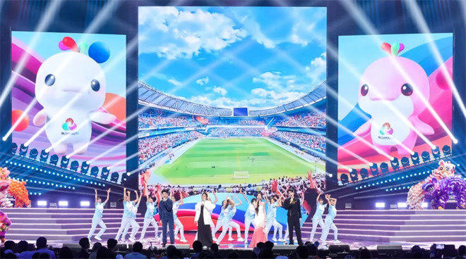 鄧小巧、伍珂玥、張?zhí)靻?、柳博與“十五運(yùn)”志愿者合唱《你的未來》