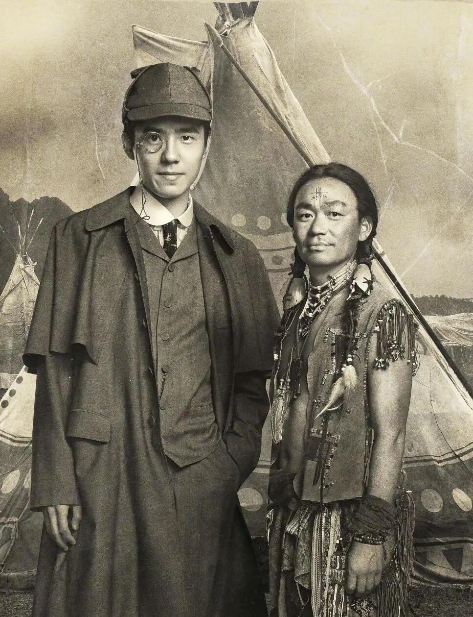 《唐探1900》不同于系列電影前幾部的獨(dú)特氣質(zhì)——頗具時(shí)代感的背景設(shè)定。劉昊然和王寶強(qiáng)有著和前作反差感十足的造型,王寶強(qiáng)飾演的阿鬼穿著一身印第安服飾,扎著兩條大花辮,充滿喜感。而劉昊然飾演的秦福則是一身福爾摩斯風(fēng)格的穿搭,大衣西裝搭配獵鹿帽,一副單邊眼鏡,襯托出他聰明睿智、善于觀察的偵探氣質(zhì)。