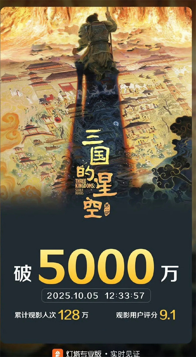 1905電影網(wǎng)專稿 國(guó)慶檔影視市場(chǎng)佳作云集,一部聚焦三國(guó)歷史的影片《三國(guó)的星空第一部》憑借獨(dú)特的敘事視角與精良的制作,成為觀眾熱議的焦點(diǎn)。截至目前,該片票房超過5000萬,豆瓣評(píng)分7.4,穩(wěn)坐國(guó)慶檔口碑排行前三。