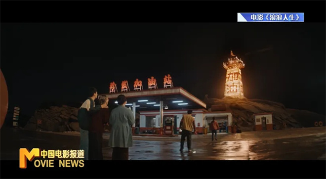 為了體現(xiàn)加油站的破敗,他們設(shè)計(jì)了很多視覺元素,比如整個(gè)加油站的銹蝕非常嚴(yán)重,玻璃被海風(fēng)吹壞,貼著膠條和窗戶紙。片中父親黃榮發(fā)為重新開張的加油站招攬客人,立起了一個(gè)巨大的燈箱,美術(shù)團(tuán)隊(duì)也還原、升級呈現(xiàn)了這個(gè)劇本文字里的燈箱視覺形象。