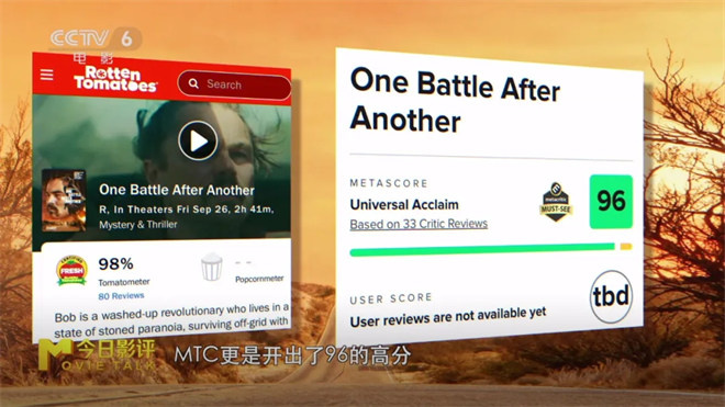 張小迪分析,影片通過鮑勃的尋女之旅,勾連起類似《日落黃沙》的西部公路片氣質(zhì),呈現(xiàn)了一群失去組織的激進戰(zhàn)士在政府追剿下的荒誕命運。影片不僅是對好萊塢類型片的“舊調(diào)重彈”,更通過動作片外殼表達對美國文化與現(xiàn)實的關(guān)注。