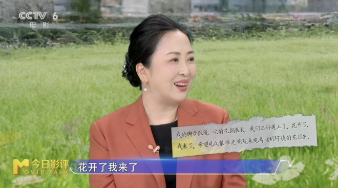 最后,她以曾在朋友圈寫下的一段詩意文字作為結語:“我的腳步很慢,它的花期很長,我們正好遇上了,花開了我來了。” 并誠摯地邀請大家走進影院,親自感受這部《胡阿姨的花園》。